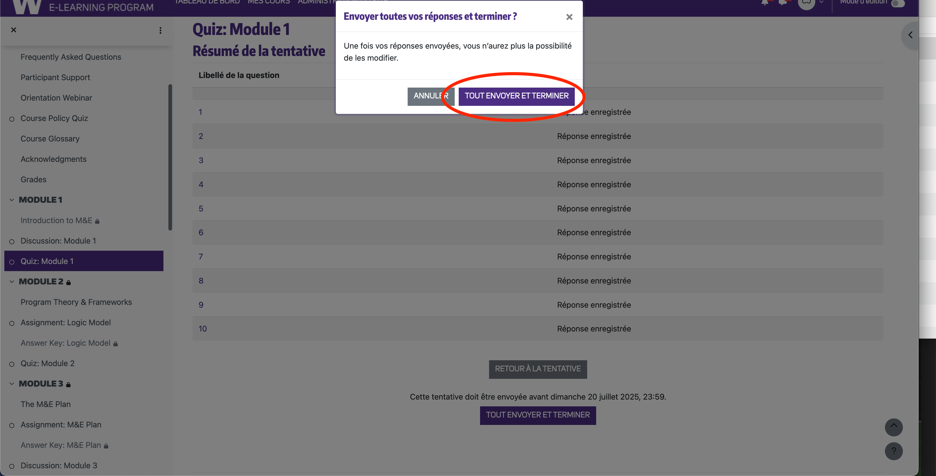 Étape 4: Une fois que vous avez répondu à toutes les questions du quiz et êtes prêt à soumettre, cliquez sur le bouton Soumettre tout et terminer.