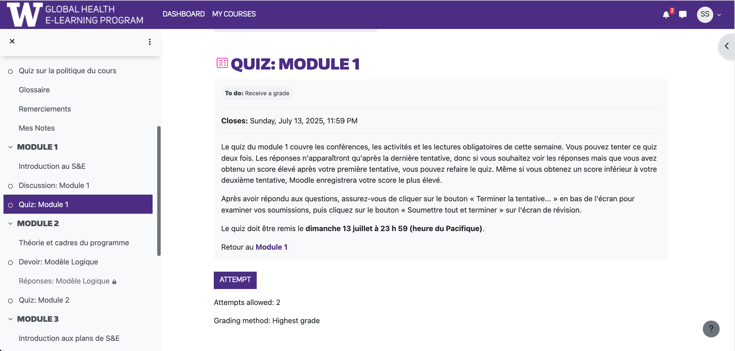 Veuillez noter que le nombre de tentatives apparaîtra sous le bouton Essayer le quiz