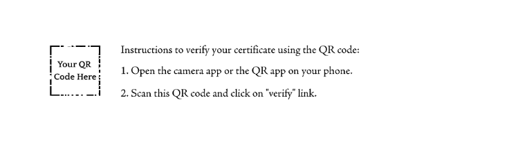When issued, your certificate will include a unique QR code that takes you to a certificate verification page. Use your camera app or QR reader on your phone to go to the link.