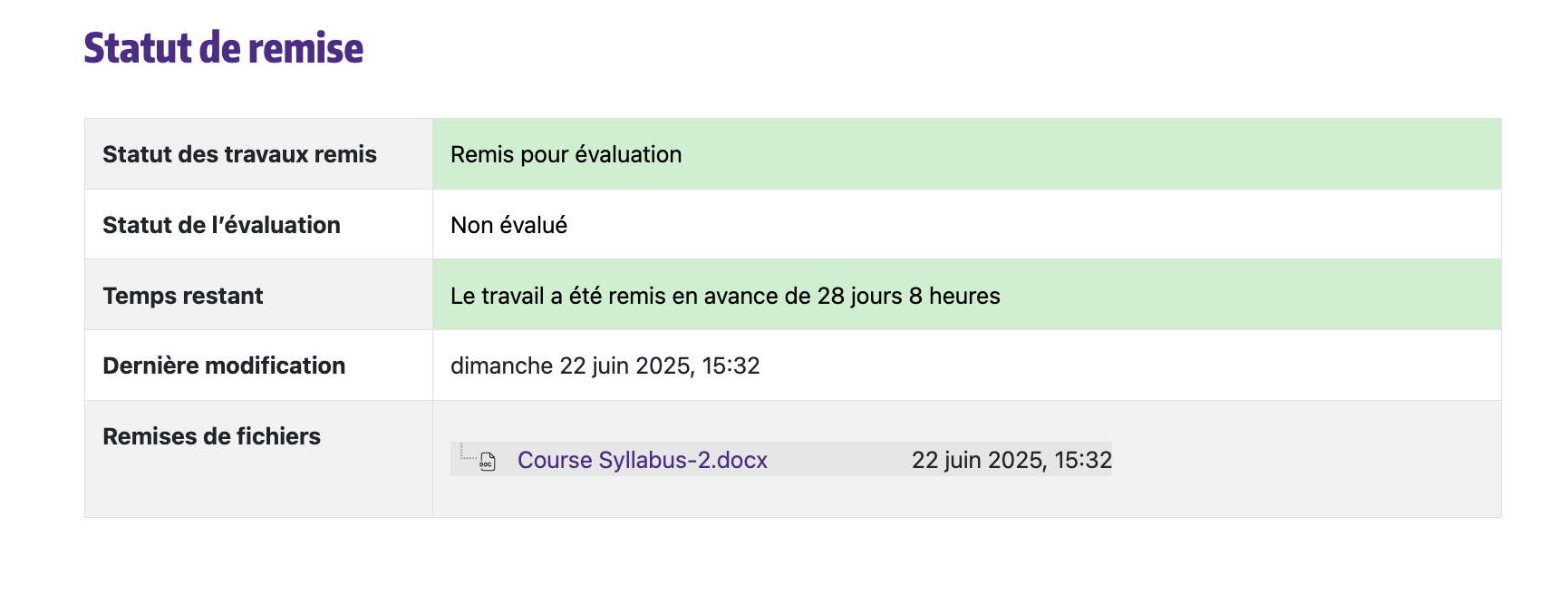 Vous avez déjà téléversé un fichier et les paramètres empêchent les nouvelles soumissions.