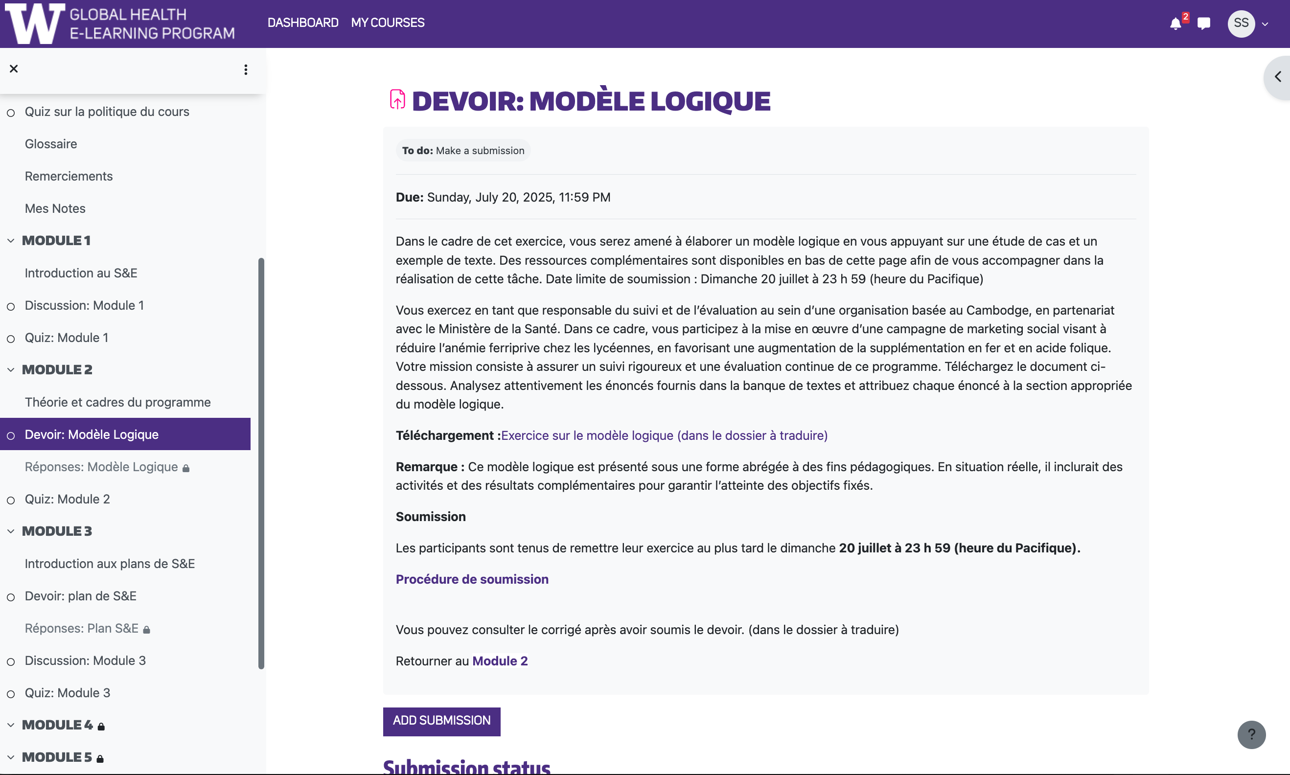 Selon le cours, vous devrez peut-être soumettre des évaluations.
